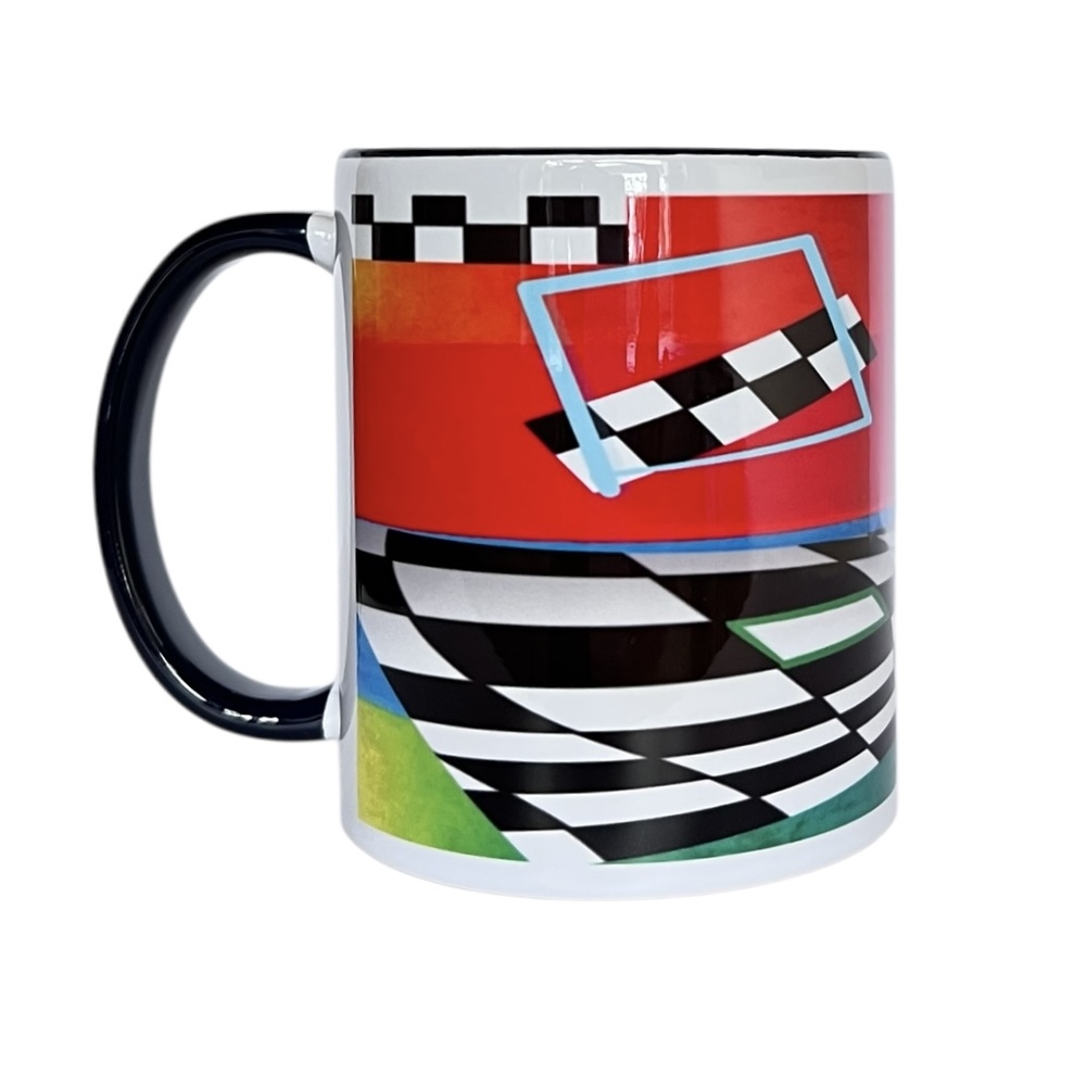 Kubek z ciemnym uchem i czarnym brzegiem. Autor projektu graficznego: Marta Grejc