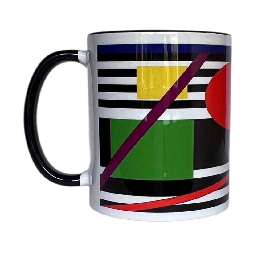 Kubek z ciemnym uchem i czarnym brzegiem. Autor projektu graficznego: Marta Grejc