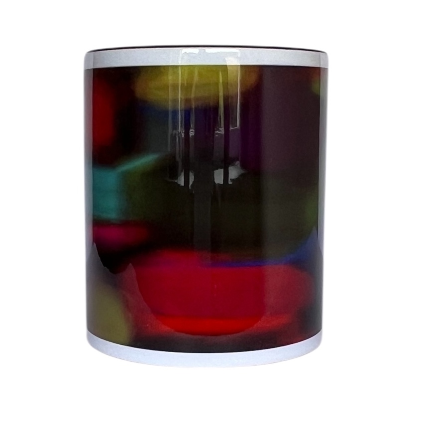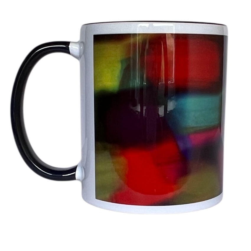 Kubek z ciemnym uchem i czarnym brzegiem. Autor projektu graficznego: Marta Grejc