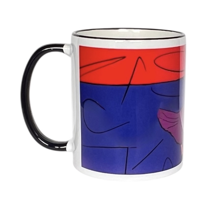 Kubek z ciemnym uchem i czarnym brzegiem. Autor projektu graficznego: Marta Grejc