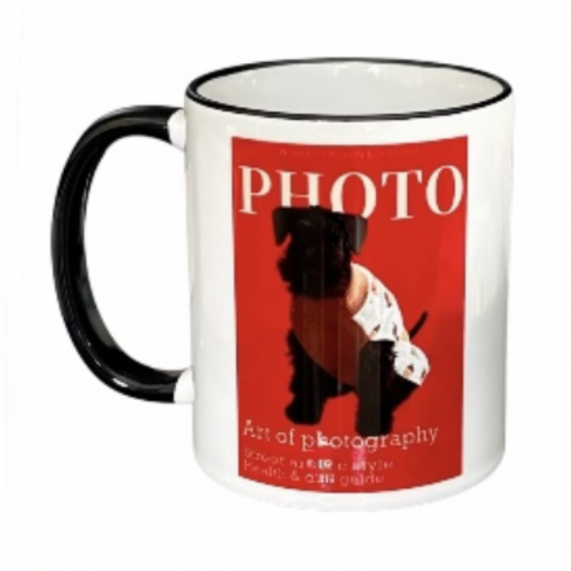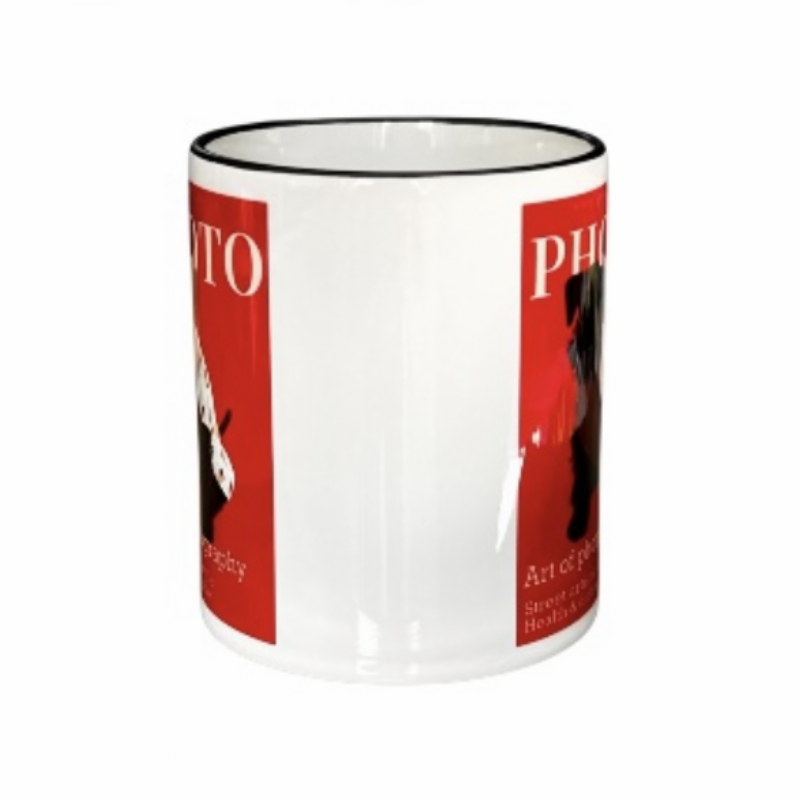 Kubek z ciemnym uchem i czarnym brzegiem. Autor projektu graficznego: Marta Grejc
